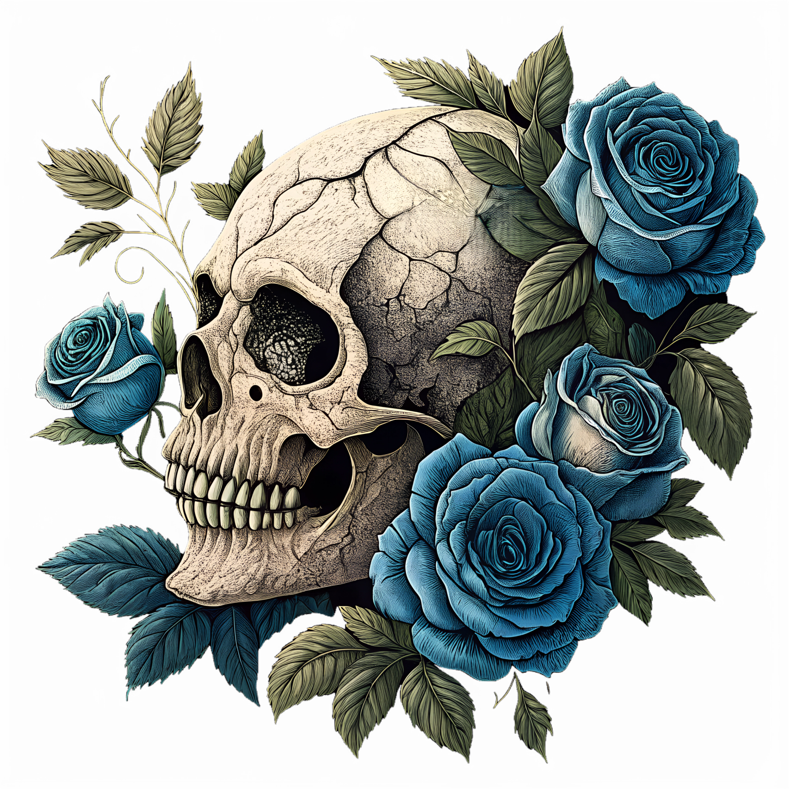 Skull and Blue Roses